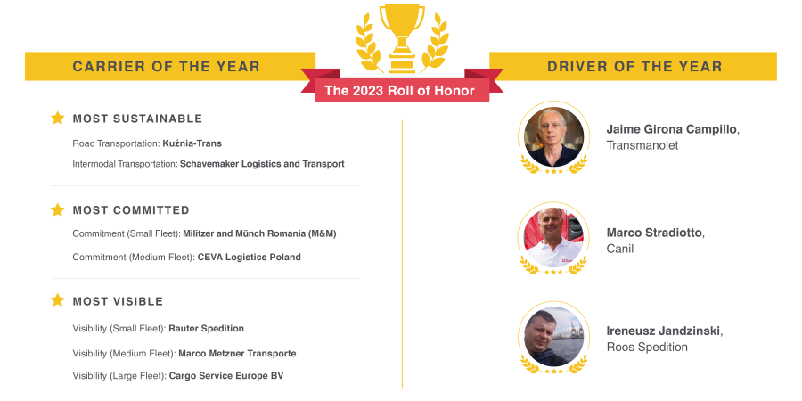 The first award in this category was Most Sustainable Carrier in Road Transportation, which went to the carrier with the lowest carbon emissions, based on platform data.