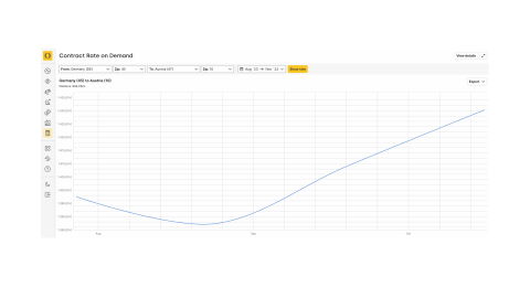 Benchmark your contract rates across your network on a ZIP or postal code level. Rate Benchmark provides accurate contract rates for FTL road transports with ambient standard equipment. You can simply upload your own rates and use the feature to drive informed sourcing decisions in your company.