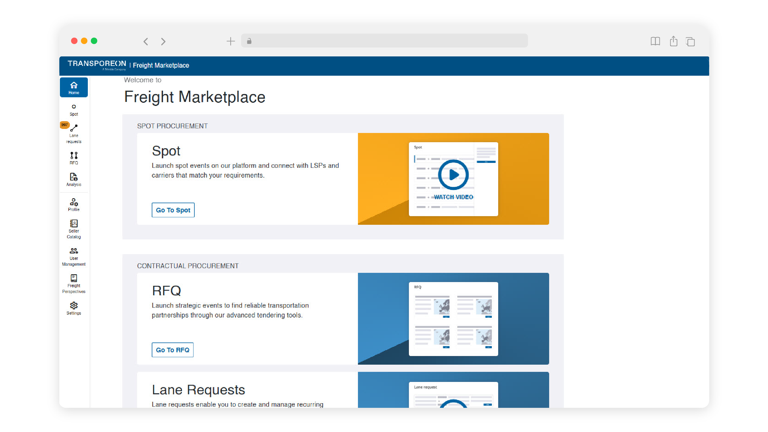 Launch structured, competitive RFQs for long-term contracts—all in one free and intuitive platform. Freight Marketplace helps you identify the best carriers, secure optimal rates and manage your strategic freight procurement with confidence.